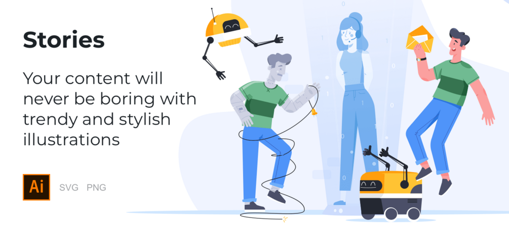 Stories helps creators who don’t draw overcome the lack of quality graphics to class up your product.